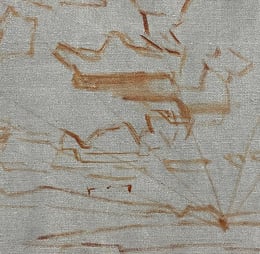 In underpainting you first apply a thin layer of oil paint to the canvas before adding additional layers. Normally, it is done monochromatic, using a single color.
